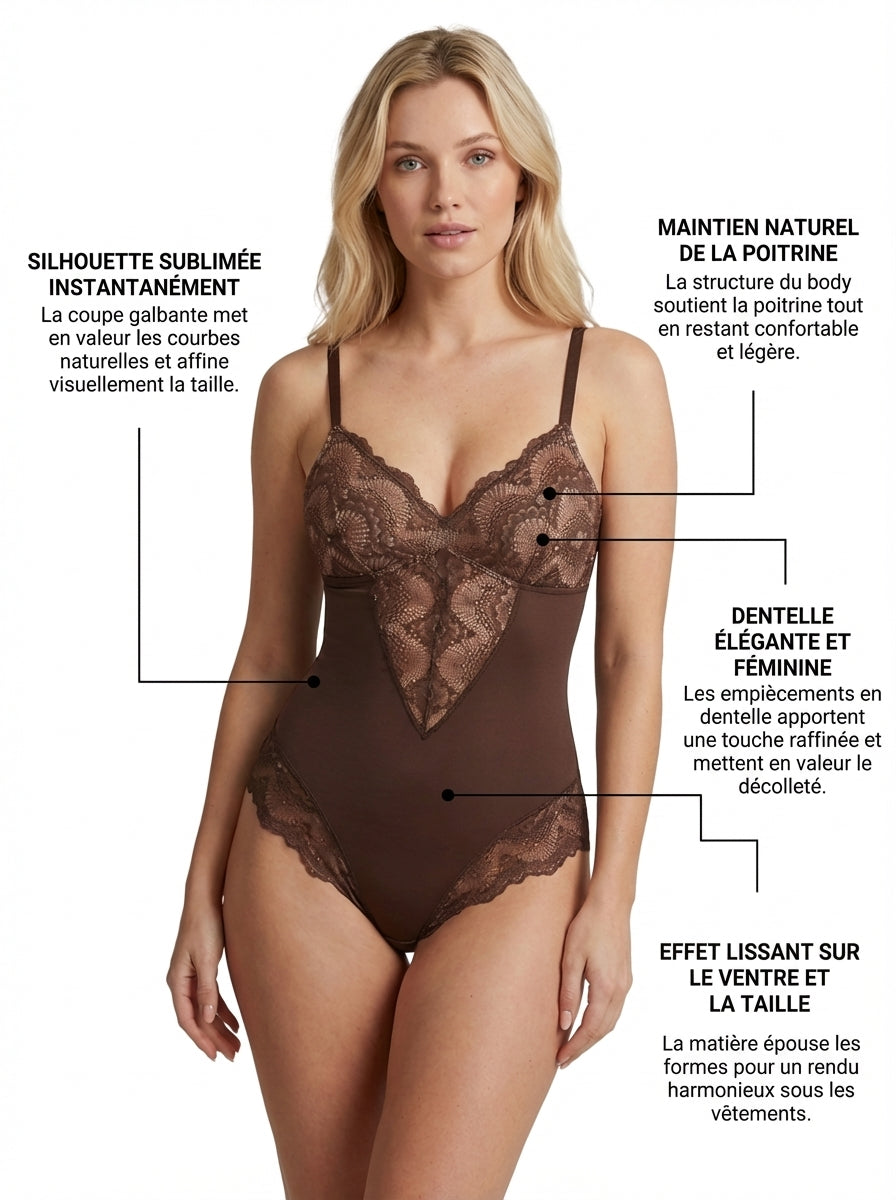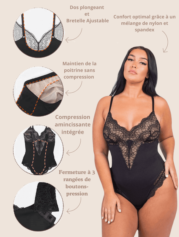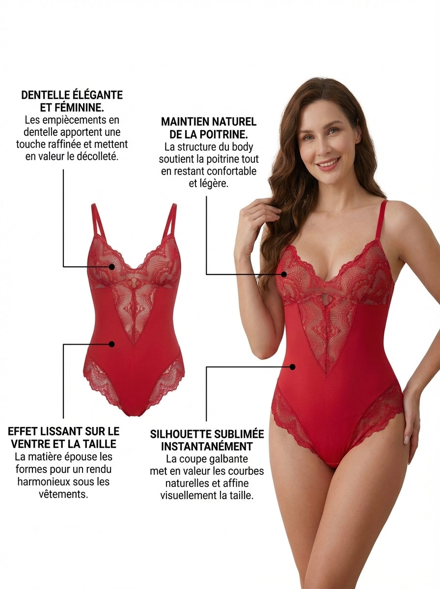 Notre body sculptant le plus raffiné, sublimé par une dentelle élégante.
