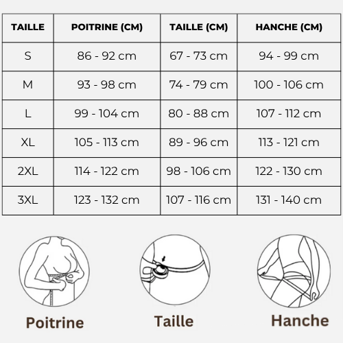 Si vous n'arrivez pas à vous décider, nous vous recommandons de choisir une taille en-dessous.
