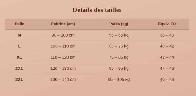 Notre guide des tailles est là pour vous aider à trouver celle qui vous correspond. Et si vous avez un doute, notre équipe est à votre écoute pour vous conseiller à contact@nudesparis.com